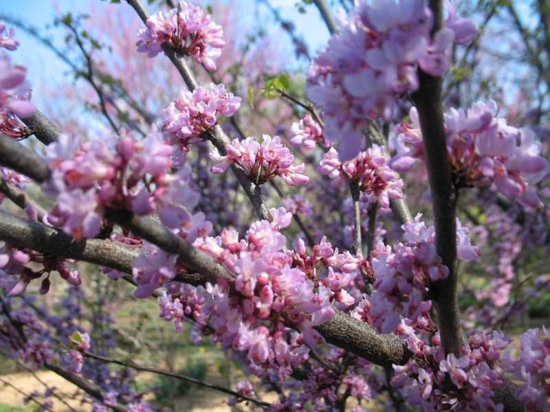 'Ace of Hearts' is distinguished by its (a) compact habit, (b) semi-glossy, heart-shaped leaves on zig-zag stems, and (c) dense dome-shaped canopy which typically requires no pruning. It typically grows as a single trunk tree (average diameter of 4") to 12' tall and to 15' wide. Clusters of tiny, reddish-purple, pea-like flowers bloom for 2-3 weeks in early spring (March-April) before the foliage emerges. Fruits (flattened legumes) are rarely produced. Broad, ovate-cordate, dark green leaves (to 2.6" long and to 2.5" wide) turn yellow in fall.