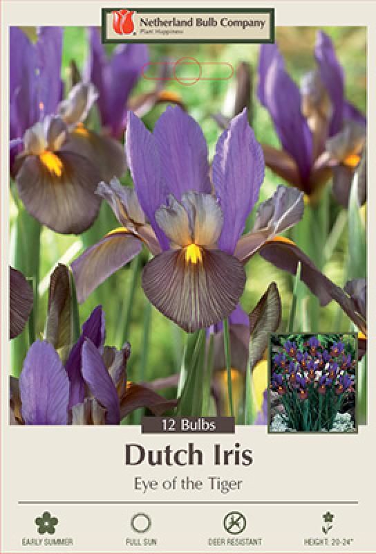 A truly spectacular combination of purple and burgundy with a contrasting splash of yellow at the throat make this unusual Iris “Eye of the Tiger” a winner. The bulbs will naturalize and multiply easily in the landscape. Good color for the ‘gap’ between spring and summer flowering plants.