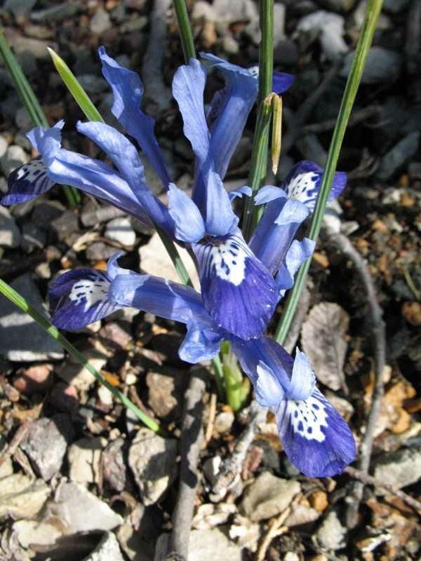 ‘Clairette’ features light blue standards and dark blue falls with a white marking in the center of each fall. Narrow, grass-like leaves elongate to 15” after bloom, but eventually disappear by late spring as the plants go dormant. Best massed in sunny areas of rock gardens, border fronts, along walks or along streams or ponds. Best planted in mass. Small groups of this small plant can get lost in the landscape. Also may be forced in pots.