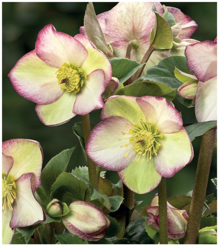 This hardy plant forms clumps of glossy, evergreen foliage in a medium, mottled green, providing year-round interest in the garden. 'Frosted Rose' stands out for its saucer-shaped flowers that emerge in late winter to early spring. Each flower features delicate creamy petals edged in rose pink, adorned with a subtle frosty overlay. These blooms are also notable for their durability, lasting for several weeks in the garden or as cut flowers. Lenten Rose is tolerant of shade and deer-resistant, making it an excellent choice for woodland gardens, borders, or as a focal point in the landscape.