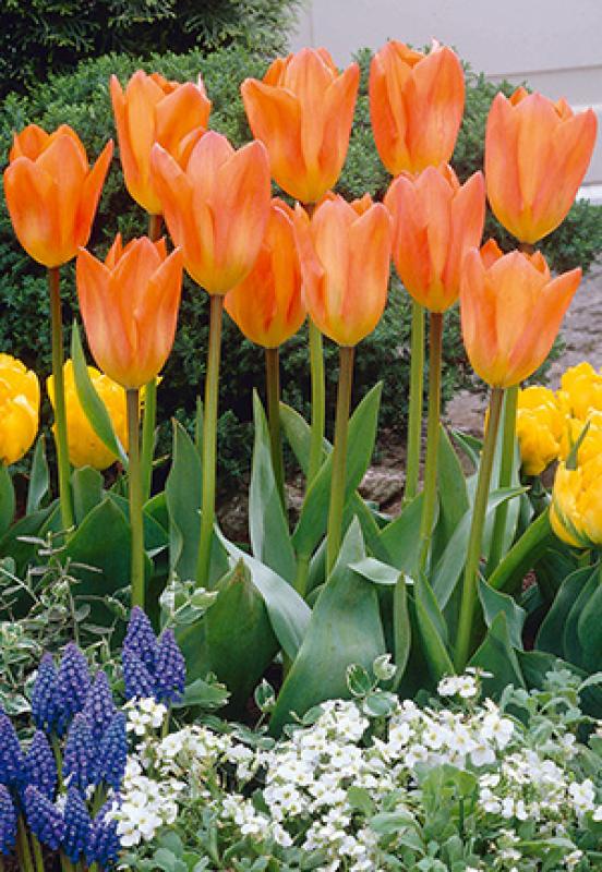 Among the earliest tulips to bloom, ‘Orange Emperor’ produces large, glowing orange flowers brushed with subtle apricot tones. Each bloom sits on a sturdy 14–16" stem and opens wide in the spring sunshine, revealing a golden base. A reliable perennializer, this fosteriana tulip is excellent for mass plantings, borders, and naturalizing, bringing brilliant color to the early spring garden.