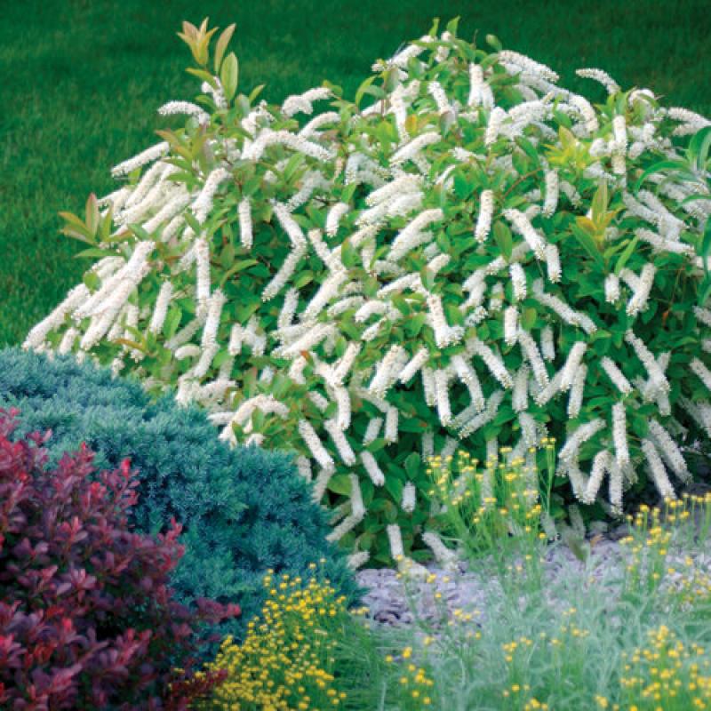 A Proven Winners® ColorChoice® best-seller, Little Henry® sweetspire is a versatile native shrub that grows in full sun to full shade and thrives in moist soils. Lightly scented, pure white flowers shoot like fireworks from the glossy foliage in summer. Just a fraction of the size of conventional Itea, its mounded, compact stature makes it an improvement over older varieties such as the 'Henry's Garnet'.