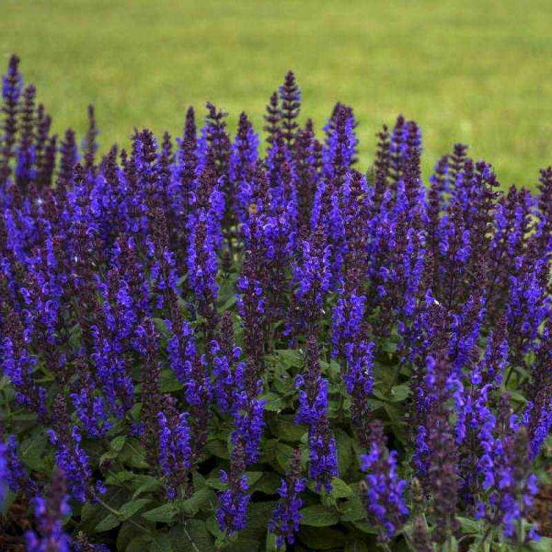 Salvia is a staple item for every sunny garden. It asks little more than sunshine and a little drink every once in a while in return for producing a bountiful mass of colorful flower spires from late spring into early summer. It forms an upright clump of aromatic, rugose green foliage that looks nice all season long and is not enjoyed by rabbits or deer.