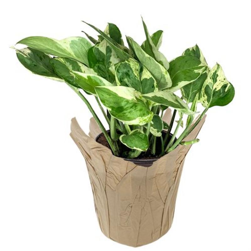 Pearls and Jade pothos (Epipremnum aureum ‘Pearls and Jade’) is named for its stunning green and white variegated foliage and for being one of the more lavish pothos varieties. Pearls and Jade pothos has smaller, thinner leaves than varieties such as the marble queen or golden pothos, and their variegation pattern is slightly different. Pearls and Jade pothos is native to the tropics but does well as a houseplant in typical household temperatures, bright, indirect light, and enriched, acidic, well-draining soil. Like all plants in the Epipremnum genus, Pearls and Jade pothos are considered toxic to pets.1