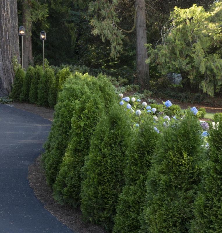 A narrow, pyramidal evergreen with dense, emerald green foliage that holds its color throughout winter. Thrives in the heat and humidity of the south, and tolerates dry spells when established. One of the most popular and effective shrubs for screening or tall hedge use. An ideal specimen for topiary.