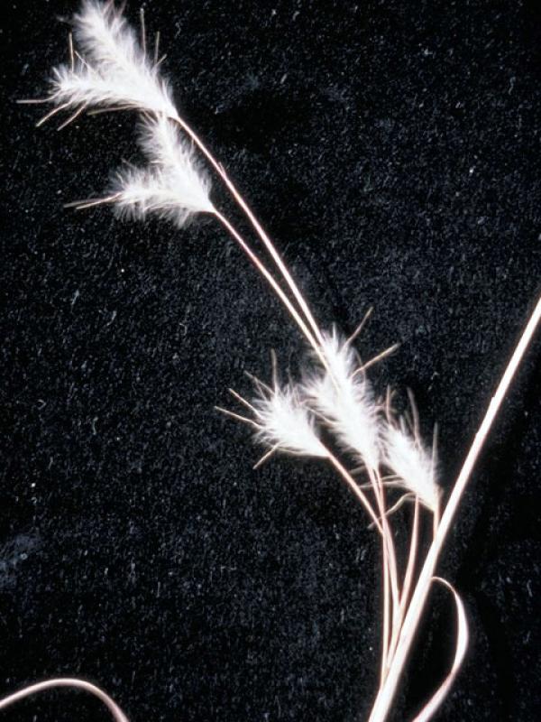 Frequently found growing with Little Bluestem (Schizachyrium scoparium) in southeastern areas with well-drained sandy or gravelly soil, Splitbeard Bluestem is notable primarily for its silvery white seed tufts, which catch the light and look particularly attractive with the sun behind them.