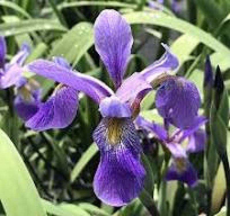An extraordinary native strain of Blue Flag introduced by Mt. Cuba Center in 2020, Iris versicolor ‘Purple Flame’ surprisingly shares the purple tones of its graceful flowers with its emerging, early spring foliage. The pointed, aubergine-tinged leaves, eventually changing to green as the weather warms, are reason enough to love this Iris. In late spring and early summer, the show turns to the blue-violet blooms borne upon handsome dark stems. Beloved by butterflies and hummingbirds, the flowers exhibit golden signals upon their falls, which serve as nectar guides for bumblebees and other native bees that also pollinate this Iris. The clump-forming plants, which are especially effective planted en masse, tolerate wet soils such as those found at the edge of ponds.