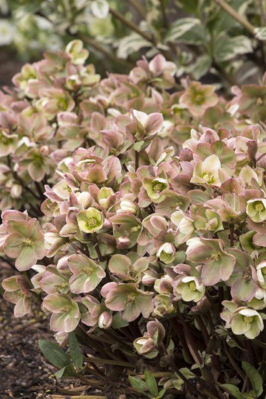 Deep pink buds open to bright white flowers that face up and outward from the plant, unlike many. Virtually problem-free, this delightful cool-season bloomer graces the dappled shade of woodland gardens. A wonderful addition to lightly to deeply shaded beds and native gardens. Evergreen.