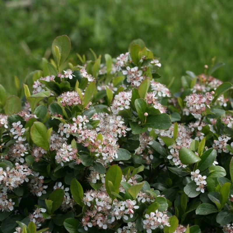 Low-growing groundcover shrub, providing beauty from spring through frost.Low Scape Mound aronia is a tough, tolerant, tidy little mound of glossy green foliage. In spring, it's covered in hundreds of dainty white flowers, and in autumn, the leaves turn brilliant red to contrast with dark purple-black fruit. The unique low-growing, mound-shaped habit of this new variety makes it perfect for mass planting as a ground cover or edging plant as it spreads outward via suckers. It naturalizes a space beautifully. Best of all, it thrives almost anywhere: cold climates and hot ones, wet soils and dry ones, sun and part shade. This native shrub will gracefully handle just about any landscape challenge you can throw at it! Top three reasons to grow Low Scape Mound aronia: