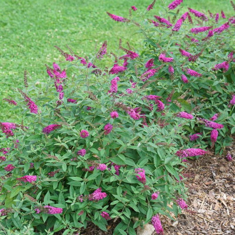 Lo & Behold Ruby Chip butterfly bush brings together the best of both, with a tidy 2.5'/.76m size and dozens of magenta-ruby flower spikes. Fragrant and long-blooming, it keeps putting out fresh flowers without the need to deadhead (i.e., remove old brown flowers). Perfect for flower gardens or landscapes.