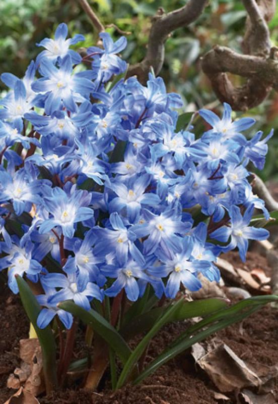 Commonly known as Glory of the Snow for its early spring blooms, 'Blue Giant' is an enhanced form of C. forbesii. It features up to eight larger, star-shaped, six-petaled flowers in rich blue with bright white centers, perched atop dark stems with sparse, narrow foliage. Deer-resistant and easy to naturalize, it thrives in well-draining soil with full to partial sunlight. Over time, it spreads through bulb offsets and possibly self-sowing. 'Blue Giant' is perfect for mass planting in garden borders, sunny woodland edges, rock gardens, and as irregular, river-like drifts.