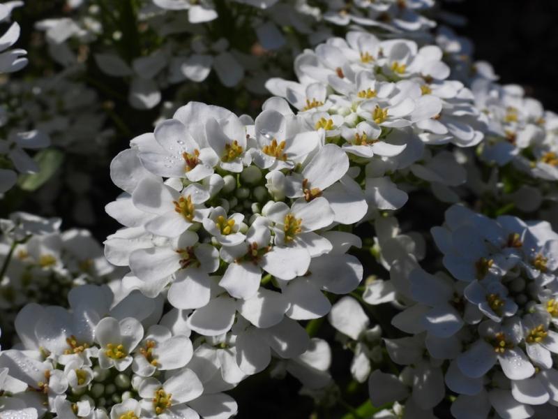 'Purity' is a compact, mound-forming selection of candytuft that features white flowers. The small white flowers are held in round, flat-topped to slightly domed inflorescences and will create a dense carpet of blooms covering the low mounds of evergreen foliage. Highly attractive to butterflies. Mature clumps will reach up to 8" tall and spread to fill a 1.5' area.