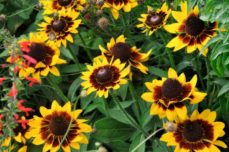 A perennial with a natural focal point, Rudbeckia hirta ‘Sonora’ is a unique and undeniably precious native selection perfect for jazzing up the summertime perennial border or meadow. Reaching a mature height of only 16”, ‘Sonora’ Black-Eyed Susan is the perfect flowering companion for compact or small garden spaces, its bi-colored flowers with blackish-brown centers and yellow edges providing eye-catching contrast whether in the landscape, container, or cut flower arrangement. From late June to September, the long-lasting blooms appear above the moderately pubescent, medium-green foliage of which helps this prairie perennial to retain water in drought conditions and deters hungry deer. ‘Sonora’ Black-Eyed Susan is a disease-resistant selection that’s sure to provide visual delight throughout midsummer!