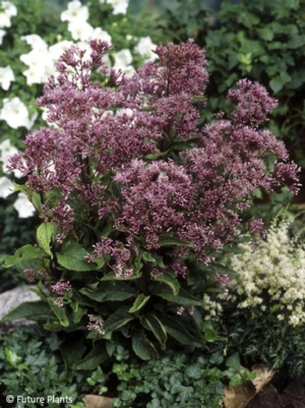 This short and sweet dwarf variety is fantastic for use in perennial borders, rain gardens and mixed containers with its shorter stature and upright habit. Attractive, dome-shaped clusters of tiny, rosy-purple blooms are a favorite of butterflies and gardeners alike, lasting from mid-summer through fall before turning into tufts of fuzzy seed heads with late autumn interest. A clump-forming perennial with whorls of coarse green leaves on sturdy stems.