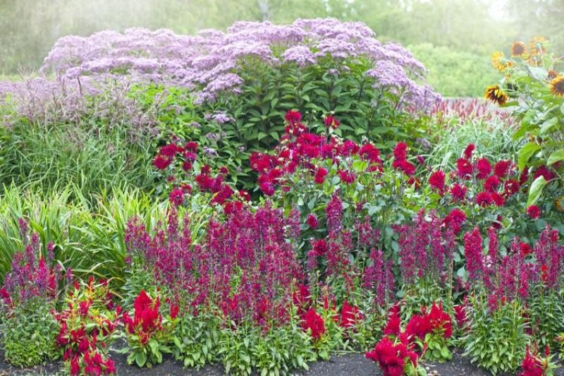 Joe Pye weed is a late-blooming wildflower with tiny mauve or pink-purple flowers blooming in large clusters atop tall, thick stems. Joe Pye weed grows naturally in sites that have somewhat moist soil, such as near streams or in drainage ditches. requires full sun or partial shade, well-drained soil, and can grow in cold or warm conditions until frost hits.