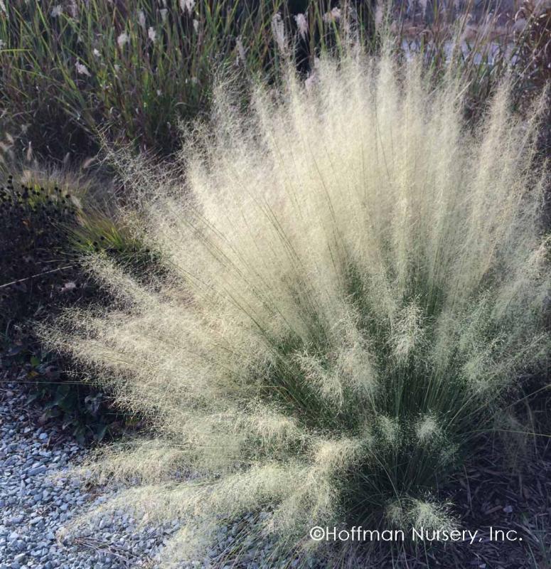 'White Cloud' was introduced by Superior Trees Nursery of Lee, Florida. It is slightly larger and more upright than the species and blooms a little later. It has fluffy plumes of delicate white flowers in late summer and fall that rise a foot above the narrow blue green foliage. The flowering stalks will mature and persist into winter. ‘White Cloud’ grows 3 to 4 ft. tall and 2 to 3 ft. wide.