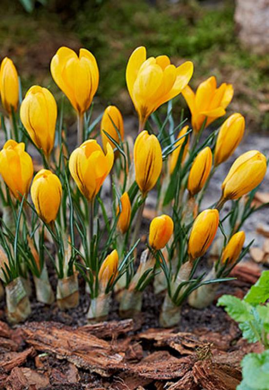 These are the much loved large flowering crocus with the glowing butter yellow shine. Plant in large groups for spectacular color. Carefree and naturalizing, these bulbs signal the end of winter. Crocus are easy to grow in well-drained soil in full sun or partial shade.