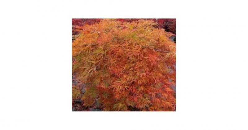 A season-long kaleidoscope of colors. Foliage changes from green to purple and then a brilliant shade of orange-red in the fall. Graceful, arching deciduous tree displaying deeply-lobed, finely-serrated leaves, giving an artistic lacy effect. Grows slightly taller than wide, unlike most weeping lace-leaf Japanese maples.
