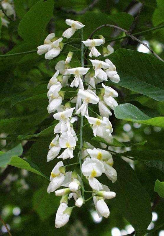 Cladrastis kentukea, commonly called American yellowwood, is a medium-sized, deciduous tree of the legume family that typically grows 30-50’ tall with upright branching and a broad, rounded crown. It is noted for its pinnately compound foliage, panicles of fragrant white spring flowers, autumn seed pods and yellow fall color. The species is native to the southeastern U.S.