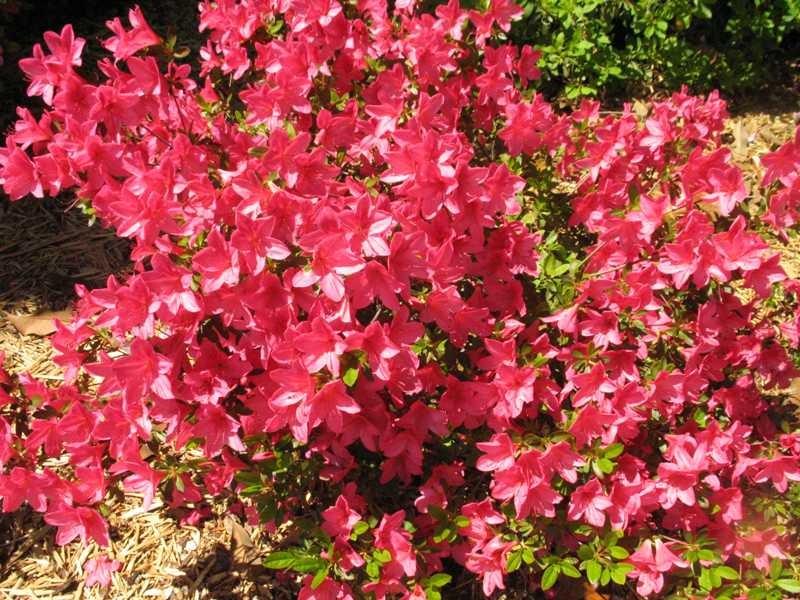 Rhododendron is a genus of 500 to 900 species and includes both of what we commonly call rhododendrons and azaleas. Most are evergreen but some are deciduous. They originate mostly from the Northern Hemisphere with high concentrations in western China, the Himalayas and Myanmar (Burma). They are grown for their showy spring flowers and in the case of evergreen types for their attractive winter foliage. True rhododendrons have 10 stamens in a flower and azaleas have only 5. Much hybridization has resulted in a great number of hybrid cultivars.