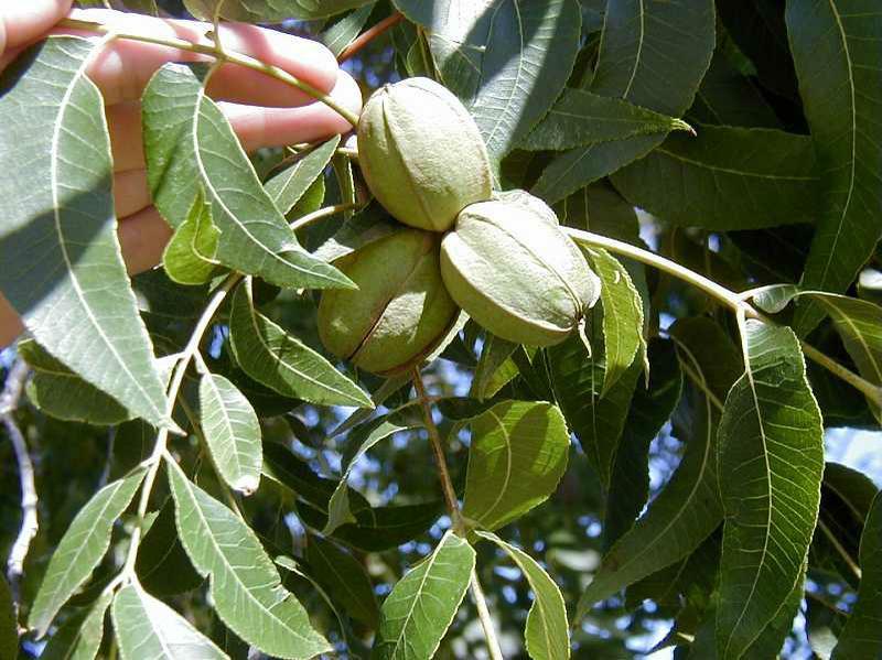 Carya illinoinensis, commonly called hardy pecan, is a large deciduous lowland tree that is the largest of the hickories. Best grown in humusy, rich, moist, well-drained soils in full sun. Difficult to transplant because of its deep taproot. If grown for nut production, plant at least two different varieties for best cross-pollination. Nut production can be sparse in the northern part of its growing range, particularly when spring is late and summer is cool. May be grown from seed, but it normally takes 8-10 years for a young tree to bear a nut crop.