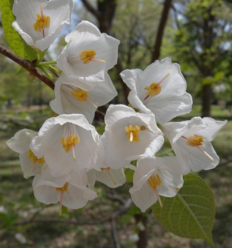 Attractive, small tree or large shrub for the shrub border or woodland garden. Interesting specimen for the lawn. Grows well with rhododendrons and azaleas. Easily grown in average, medium, well-drained soil in full sun to part shade. Prefers moist, acidic, organically rich soils in part shade. May be grown as a large, multi-stemmed shrub or trained as single trunk tree.