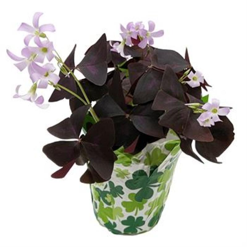 Purple Shamrock is a mounding plant that boasts deep, almost black, shamrock-shaped foliage. Its contrasting, delicate pink blooms put on a show all summer long! Perfect for containers or a sunny spot in the garden. (Oxalis triangularis)
