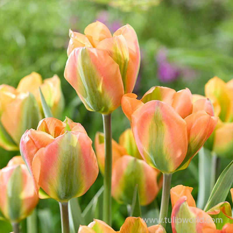 Add a touch of playful vibrancy to your late Spring garden with the Orange Marmalade Tulip! This viridiflora variety features deep orange petals with a pronounced green stripe down the center. The bold colors remain prominent throughout the entire bloom season! The long lasting blooms are sure to enhance your Spring garden bed as well as cut flower arrangements.